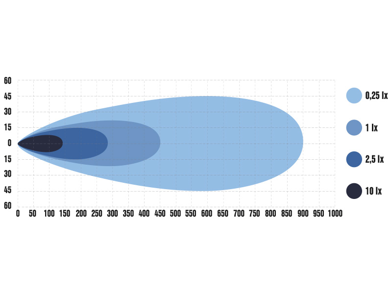 Kaugus, 1 lux: 450 m